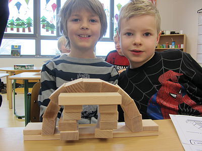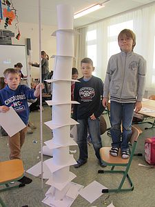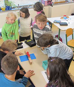 Am Vormittag werden in der Vorschule kleine Versuche gemacht, die ersten Klassen beschäftigen sich mit "Schwimmen und Sinken", die zweiten Klassen mit Türmen und Brücken, die dritten Klassen mit Feuerzauber und in den vierten Klassen geht es hoch hinaus – Flugobjekte stehen im Mittelpunkt.