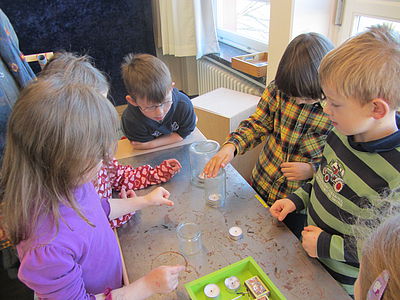 Den meisten Kindern macht das Experimentieren Freude. Dieses Interesse der Kinder zu erhalten und ihre Kompetenzen in diesen Lernbereichen weiterzuentwickeln, ist uns wichtig.