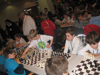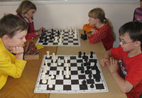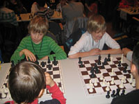 In einem anderen Raum wurde Simultan-Schach gespielt. Dabei spielten mehrere Kinder an verschiedenen Schachbrettern gegen einen Erwachsenen. Man konnte sich hinsetzen und spielte los.