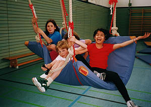 Stets unterschiedliche Aufbauten gestatten es 14tägig den Schülern aller Klassen ihre Bewegungserfahrung zu erweitern. Lehrerinnen führen Aufsicht, um Gefahren zu minimieren, greifen aber so wenig wie möglich in das eigenverantwortliche Tun der Kinder ein.