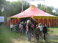 Am Sonntag, den 22. Mai wurde auf dem Bolzplatz neben unserer Schule das große rot-gelbe Zirkuszelt aufgebaut. Viele Eltern und einige Kinder und Lehrer packten mit an.
