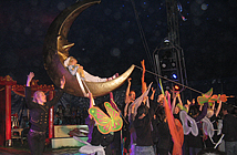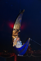 Im Scheinwerferlicht der Manege, in glänzenden Kostümen bei manchmal verträumter und manchmal mitreißender, poppiger Musik führten alle ihre Kunststücke vor. Während die Schwarzlicht-Kinder ihre Tücher und Bänder schwangen und ihre Schmetterlingsflügel leuchteten, schaute Luna vom goldenen Mond aus zu. Während sie schlief, träumte sie von Fantastasien.